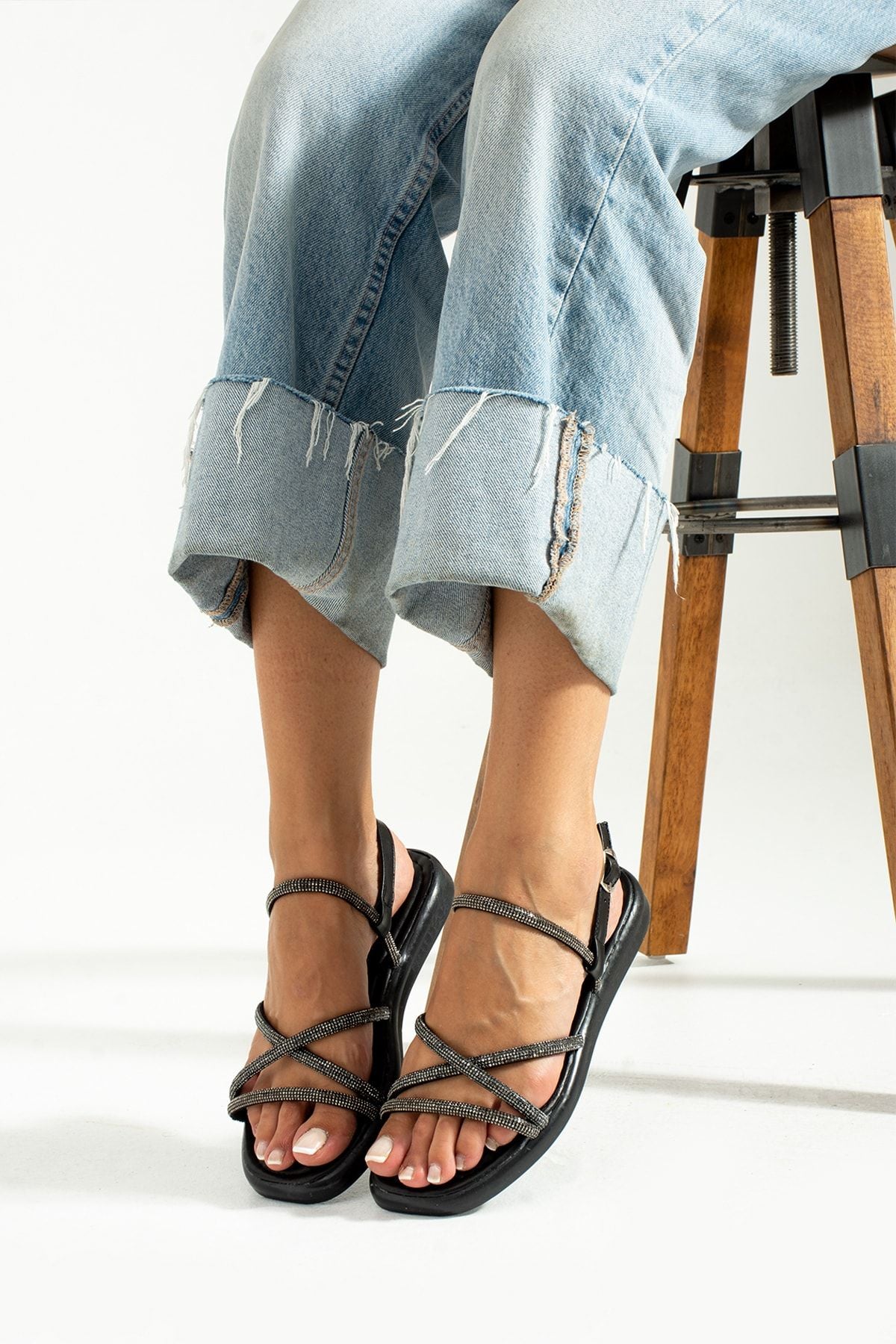 KADIN TAŞ DETAYLI DÜZ TABAN GÜNLÜK ORTOPEDİK SANDALET – Neva'nın Butiği İçeriğe atla
