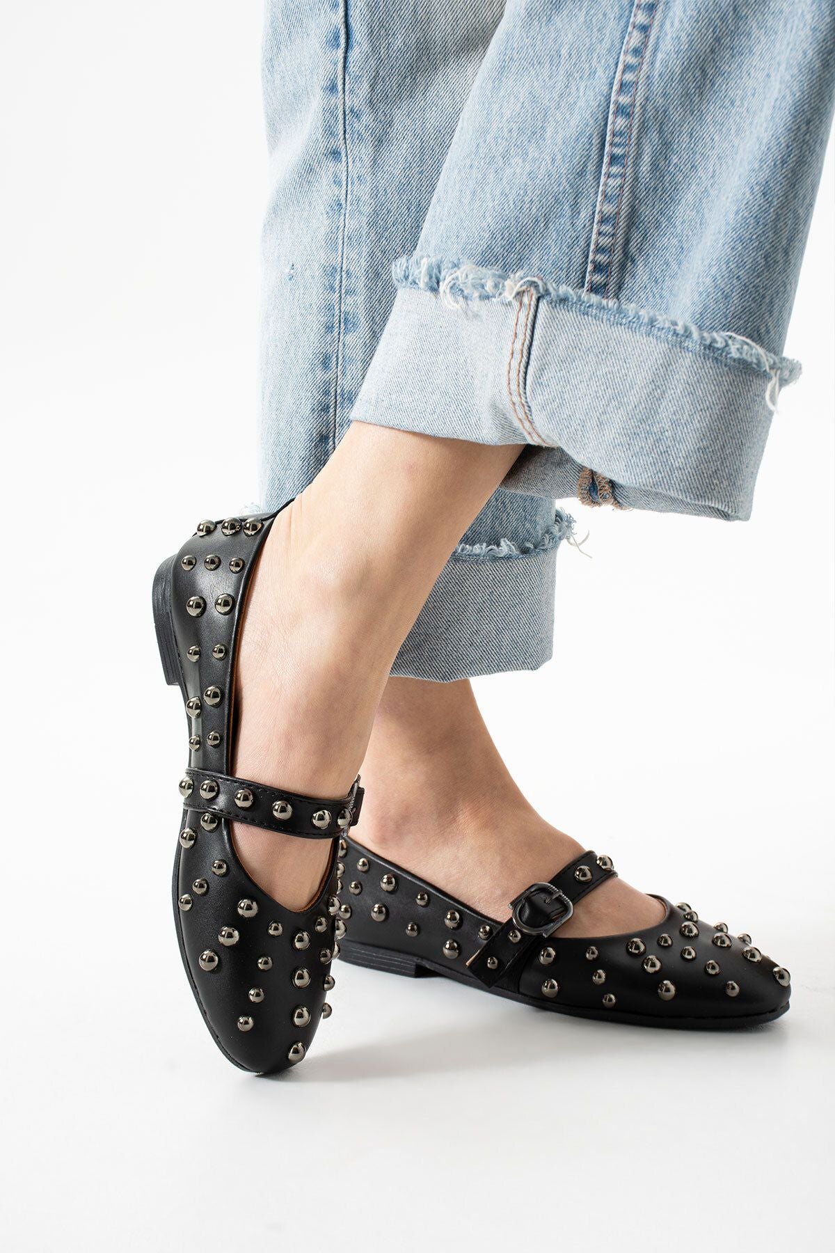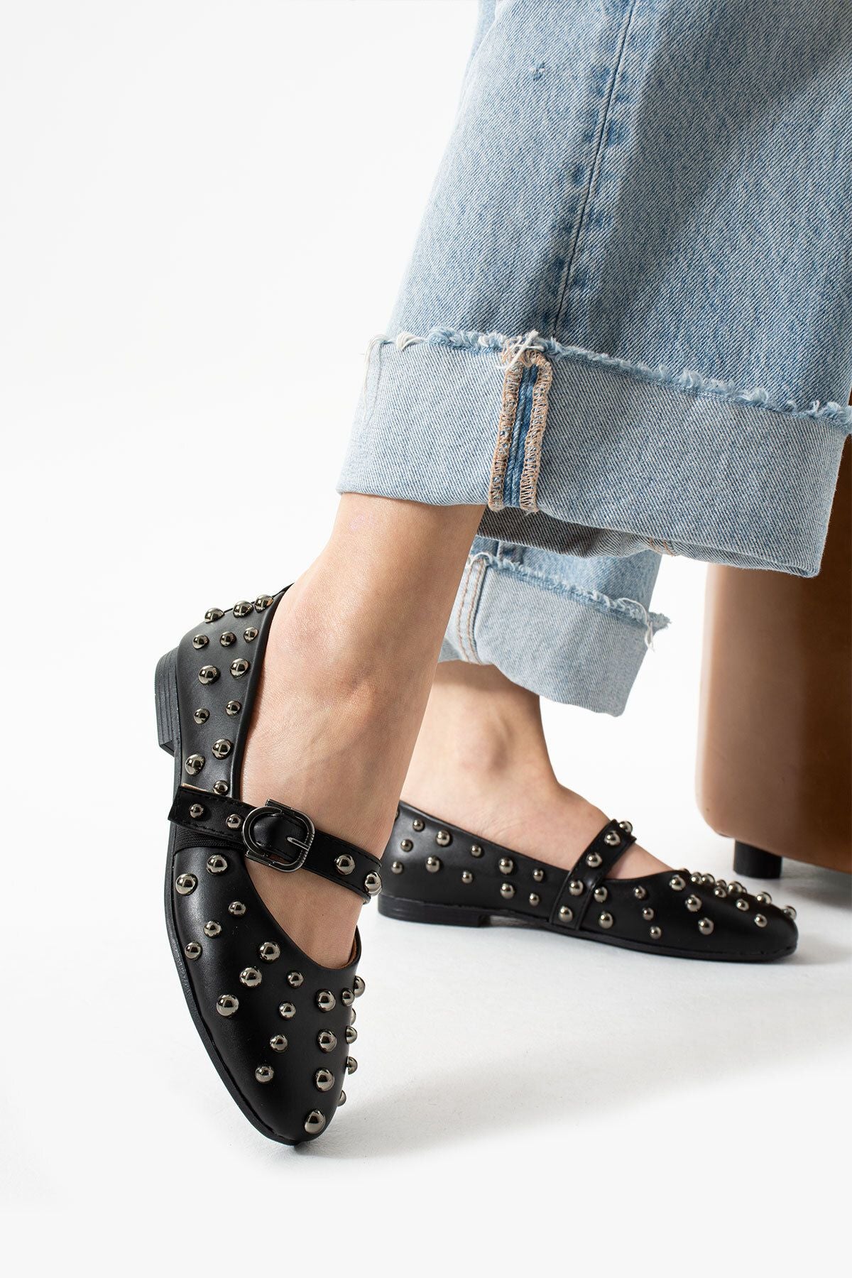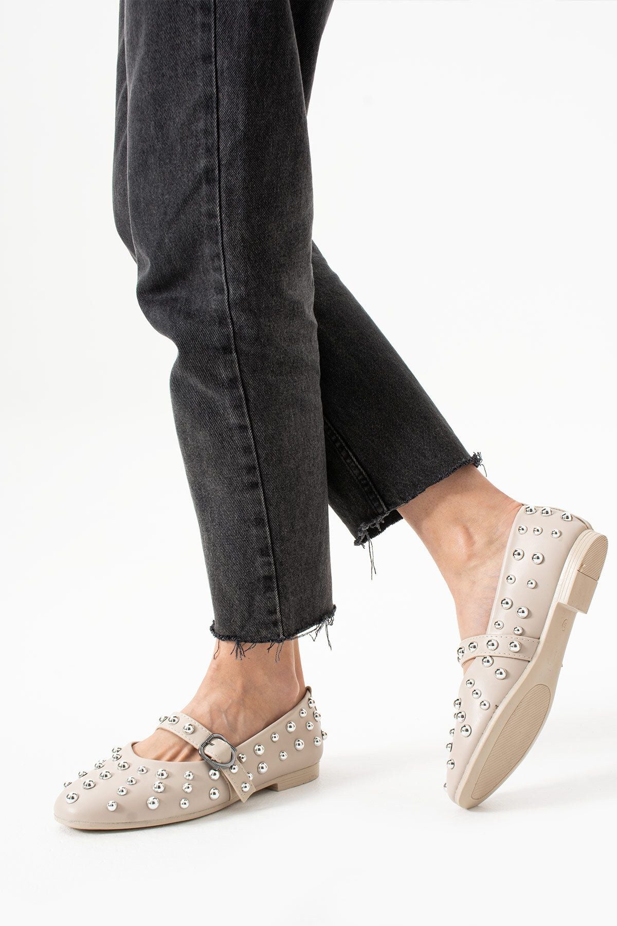 Loren Cilt Trok detaylı düz taban günlük kadın babet