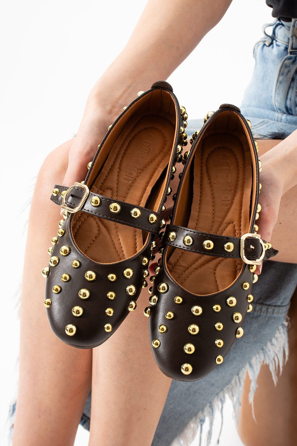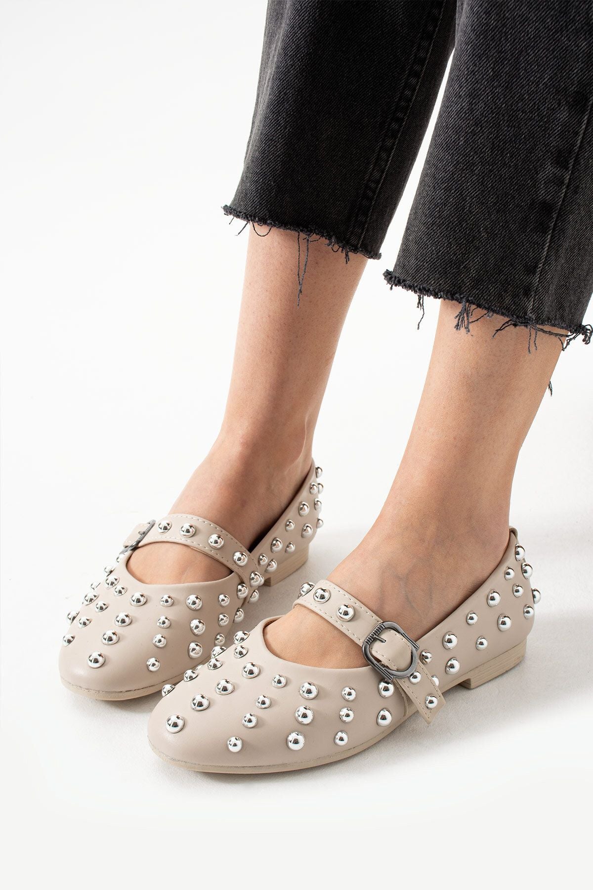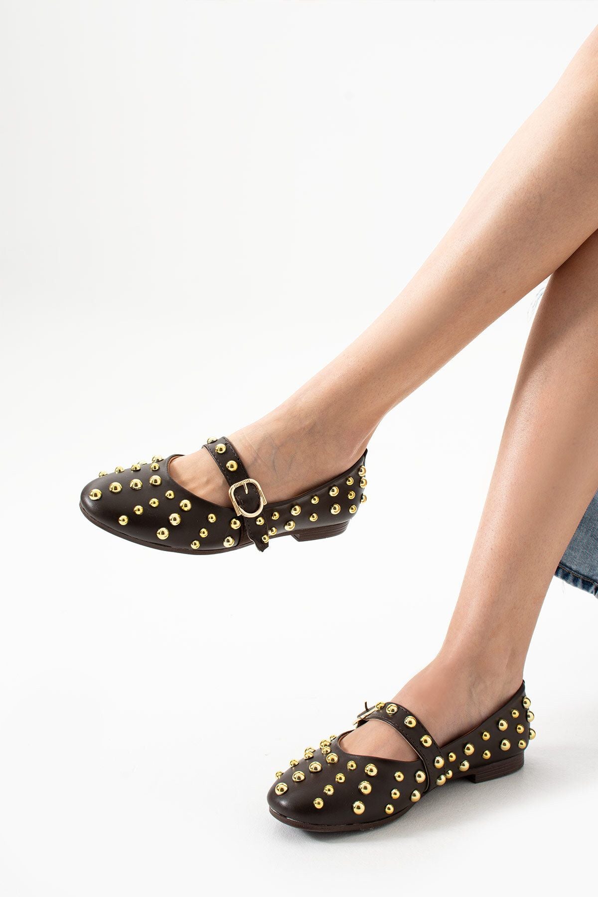 Loren Cilt Trok detaylı düz taban günlük kadın babet